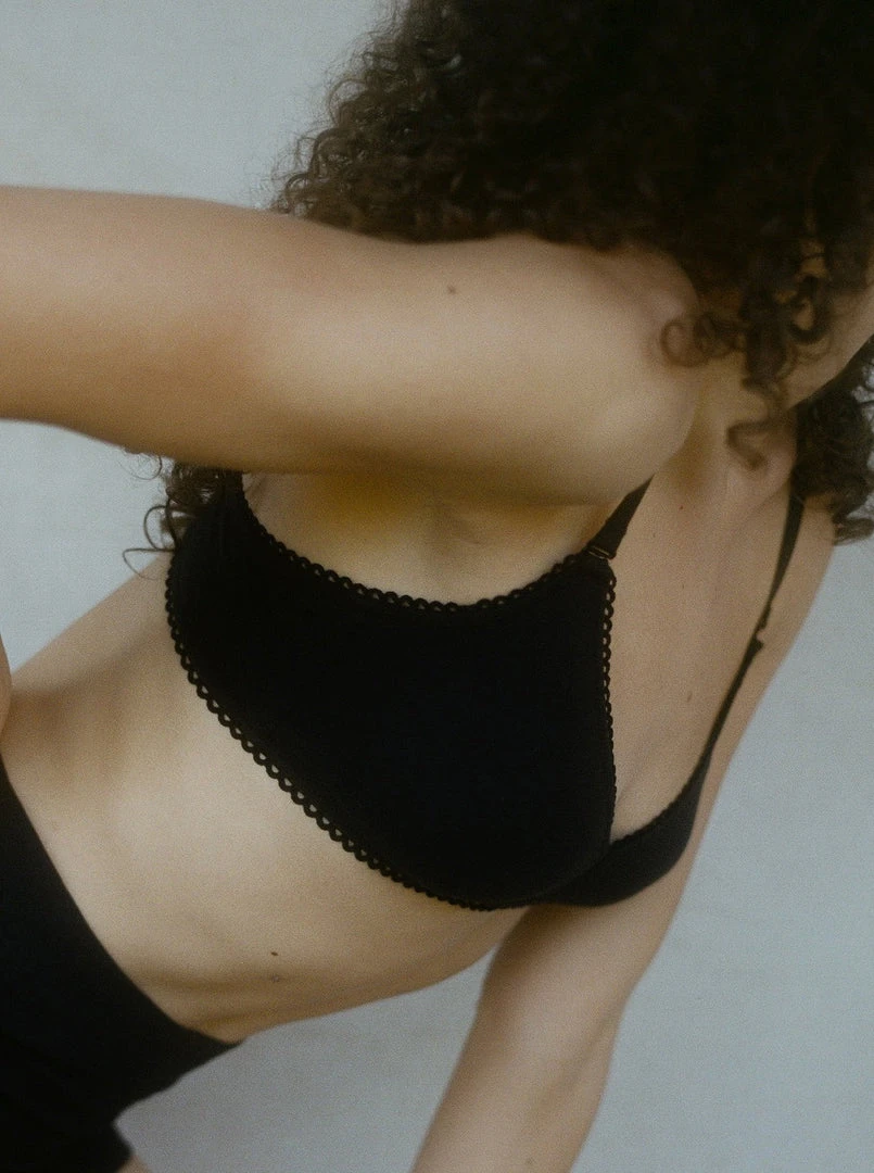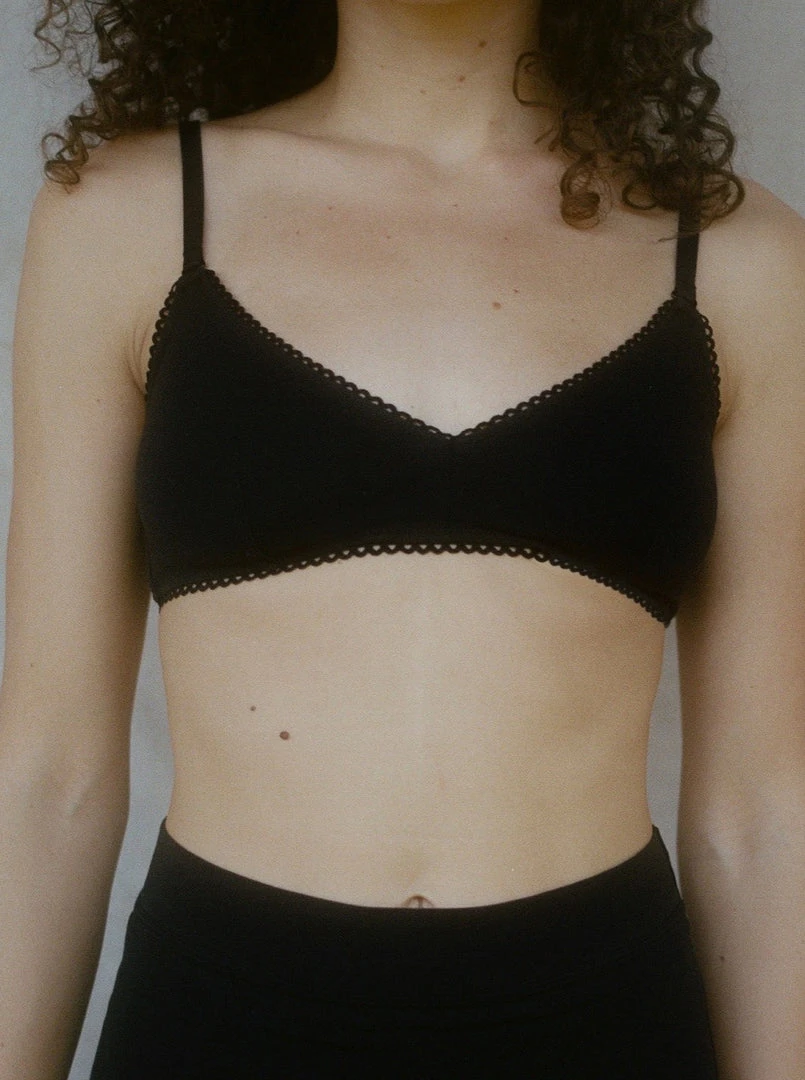A bra for when the last thing you want to do is wear a bra. Made with a breathable organic cotton and minimally reinforced with side boning for delicate support, it feels so good you may wonder if it’s even a bra at all.