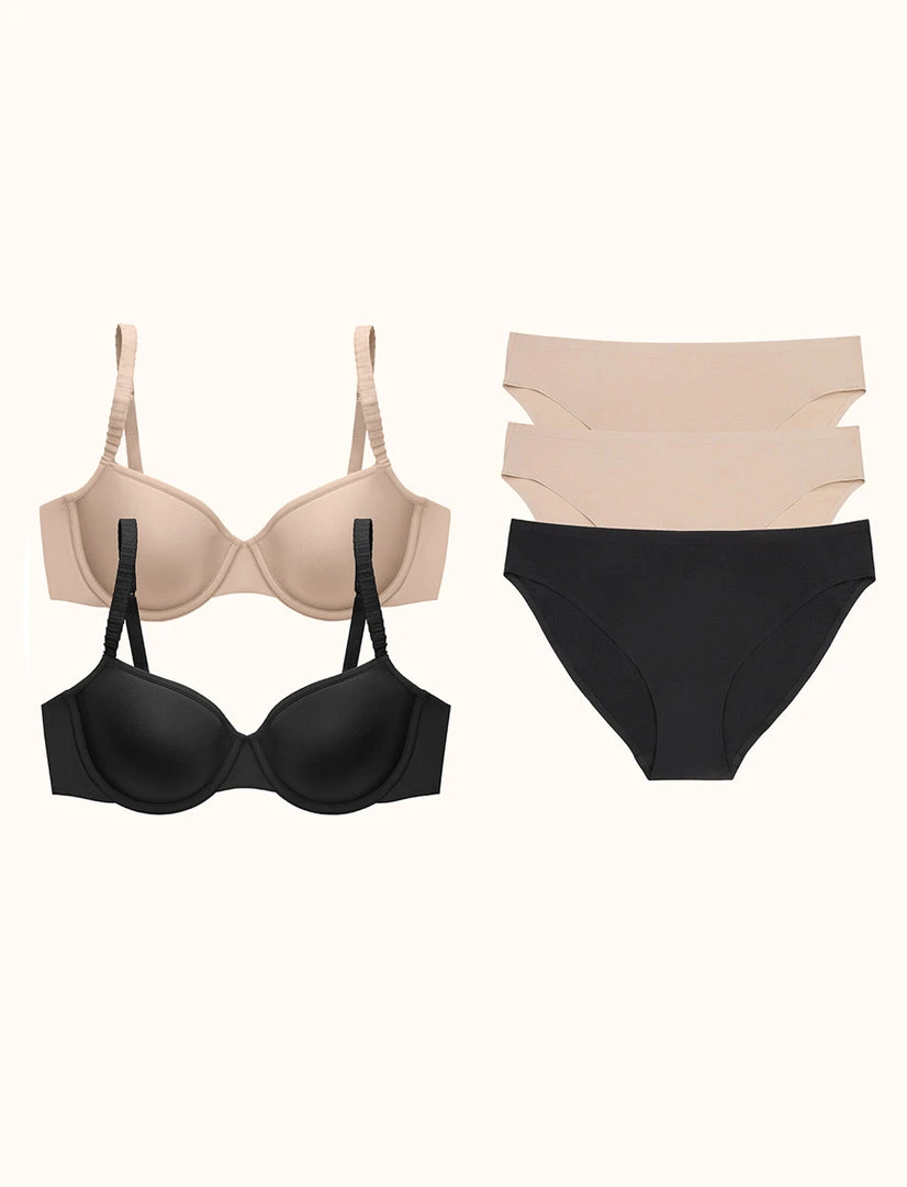 Includes two 24/7® Classic T-Shirt bras and three pairs of bikini or thong Comfort Stretch underwear. Everything you need for all-day, no-show comfort. No matter what you’re wearing.