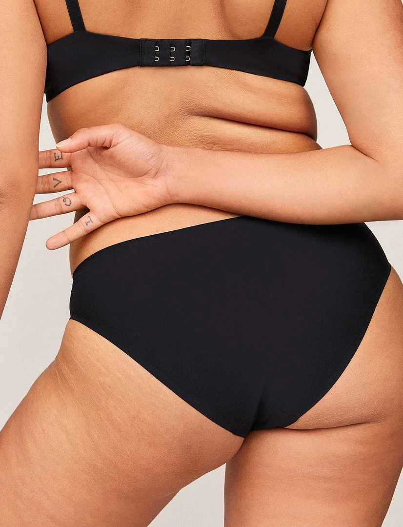 - Underwear: XS–3X; mid rise with bikini or minimal (thong) coverage; stitch-free bonded construction for sleek, no-chafe openings; nylon/Spandex with 100% cotton gusset