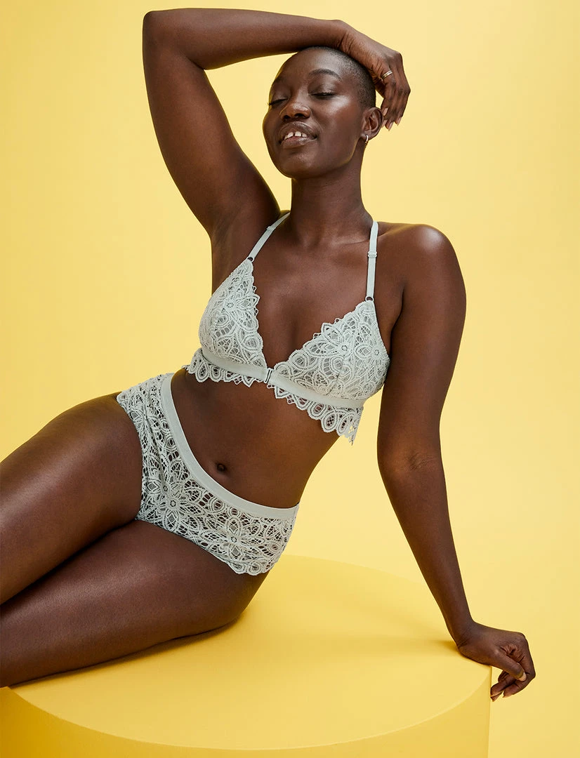 Super soft crochet-style lace that’s made to be seen. Wear this lightweight, front-close bralette under clothes or show it off as a top.