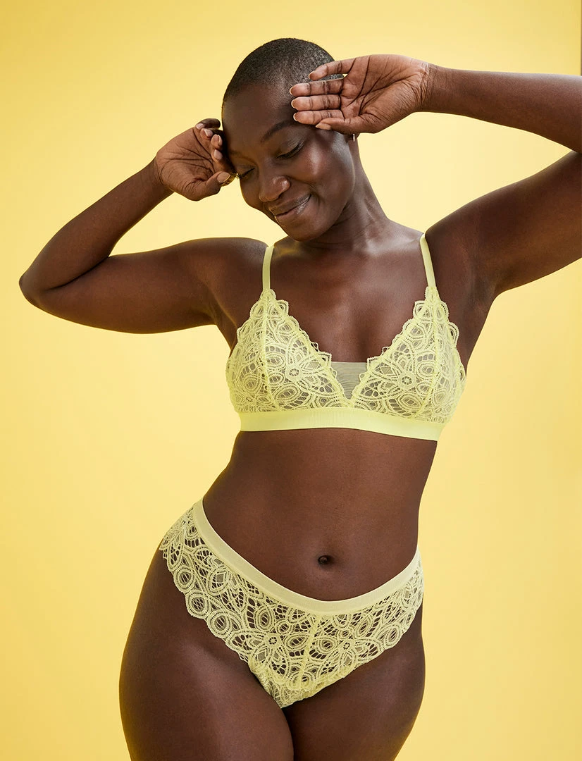 Our limited-edition Boho Lace bralette is made with lightweight, super soft crochet-style lace you’ll want to show off. Designed with triangle cups and mesh lining at the center and sides for extra support.