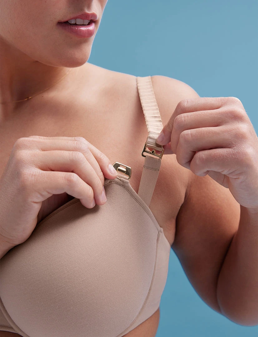 - Drop-down cups for easy nursing or pumping