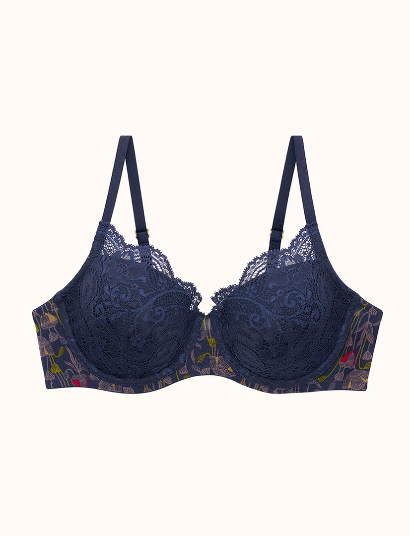 Beautifully comfortable meets ready to turn heads. The same all-day support as the 24/7® T-Shirt Bra with slightly more coverage thanks to delicate floral lace trim. Couture-inspired wildflower print, hand-drawn in house.
