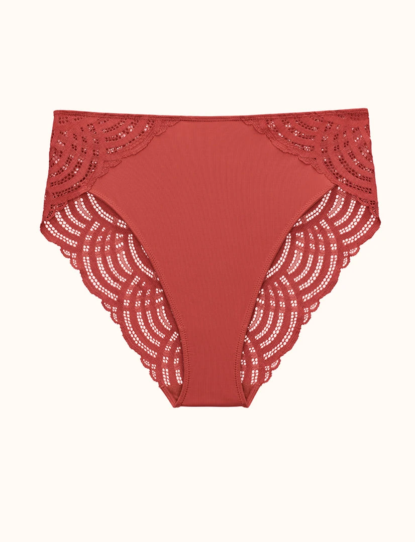 Classic 1920s style has been reimagined: where full coverage meets flirty, there’s the Deco Lace High Brief. Our modern textured lace take delivers a perfect balance of embroidered aesthetic and everyday wearability. Hello, comfort chic.