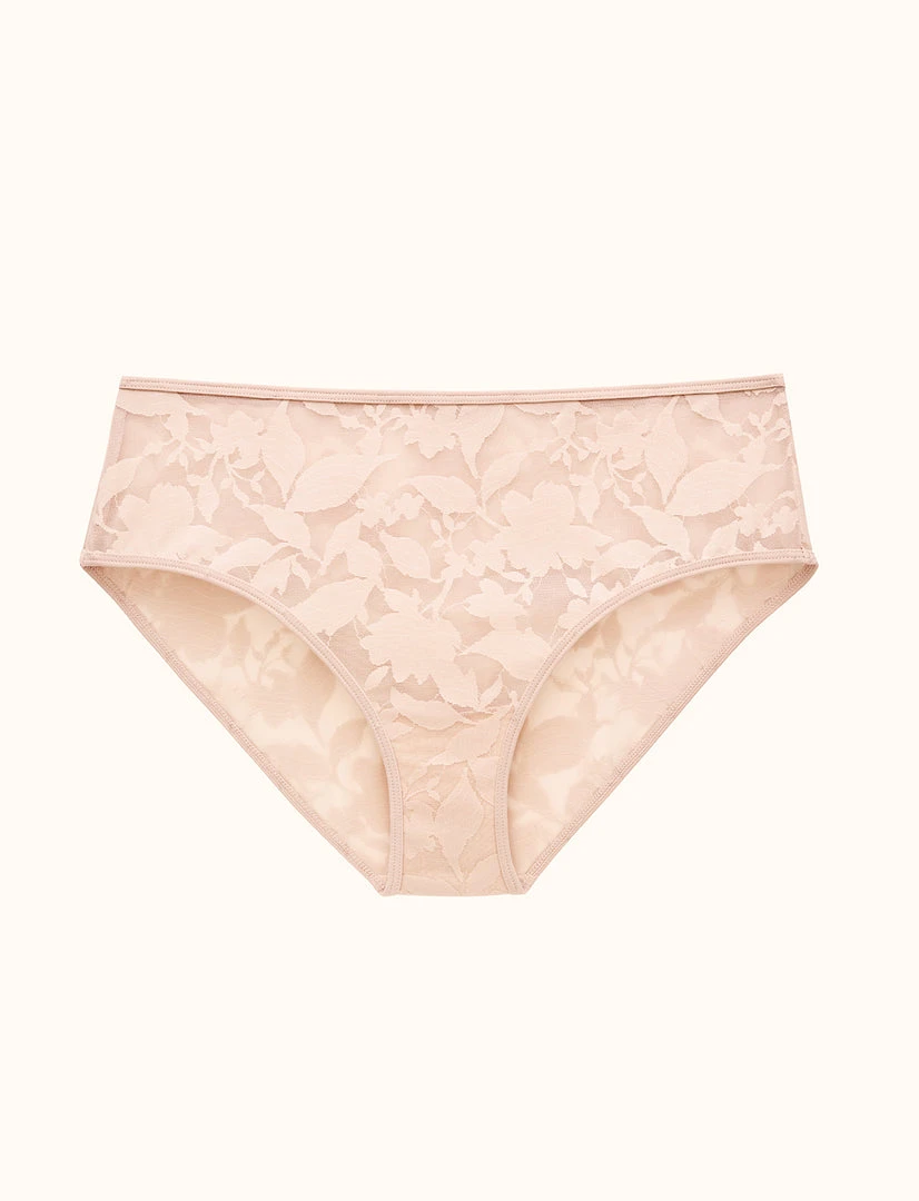 Airy, semi-sheer lace brief in a gorgeous floral print overlay. Super soft, breathable fabric hugs your curves just right.
