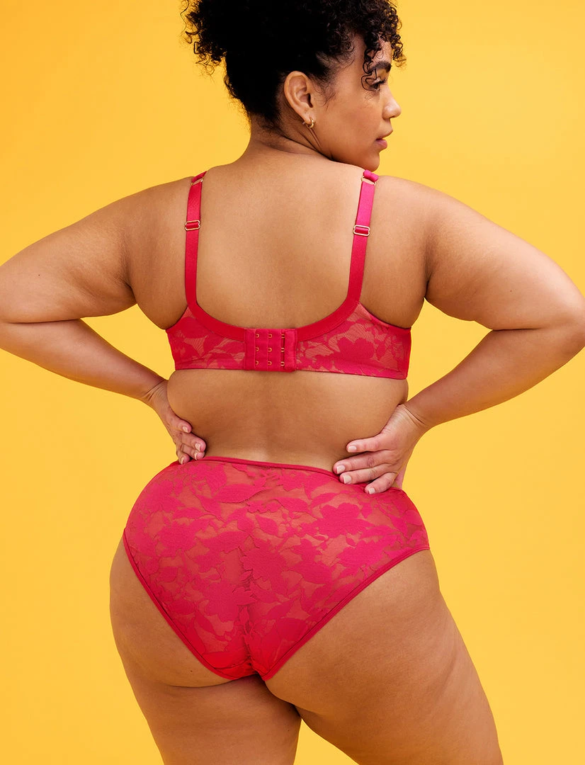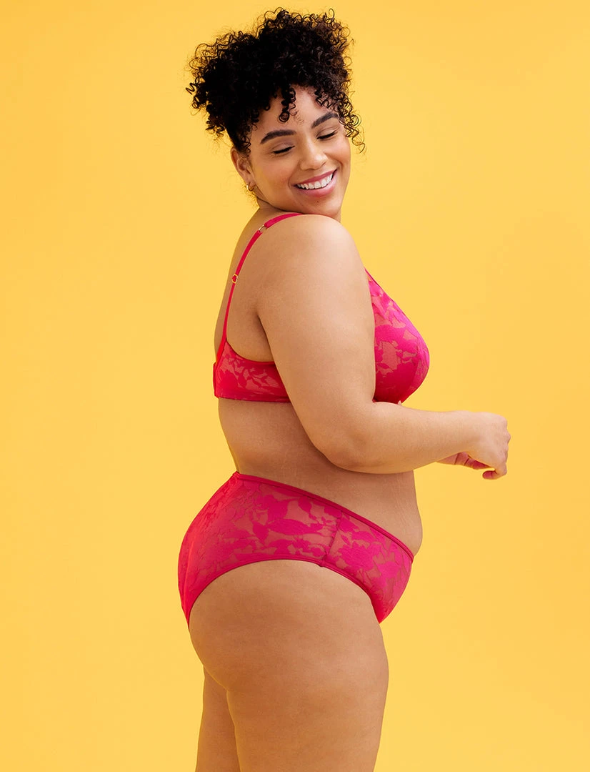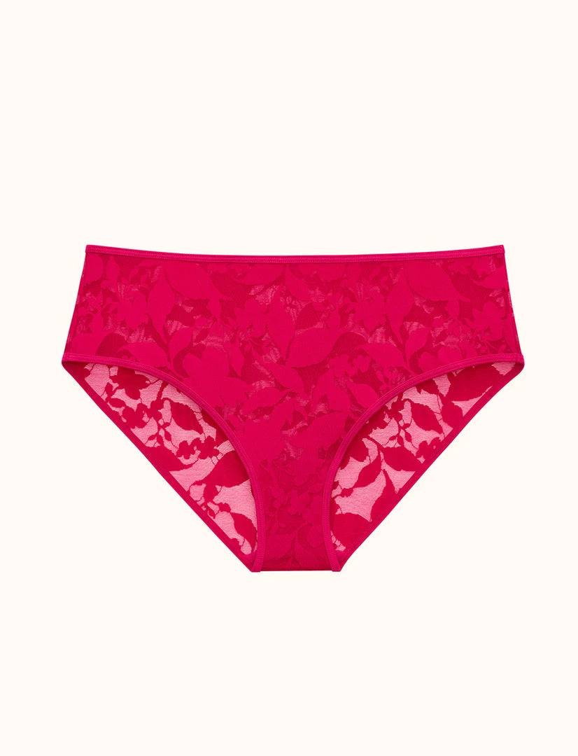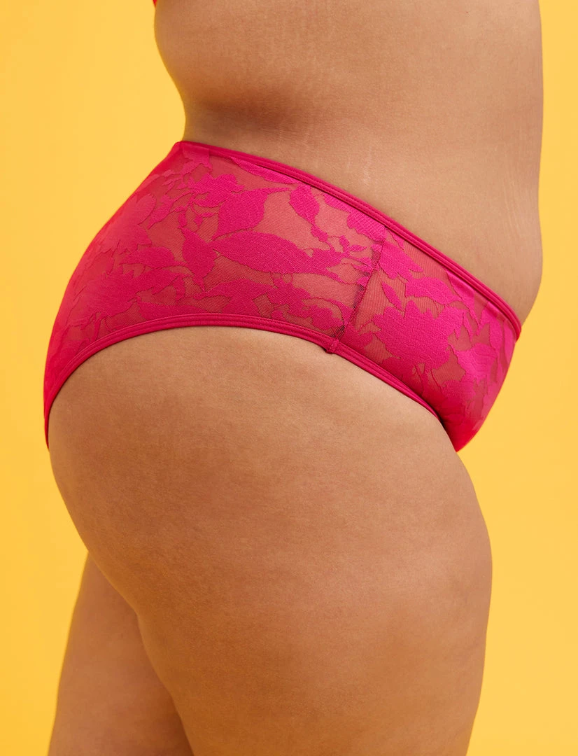 Airy, semi-sheer lace brief in a gorgeous floral print overlay. Super soft, breathable fabric hugs your curves just right.