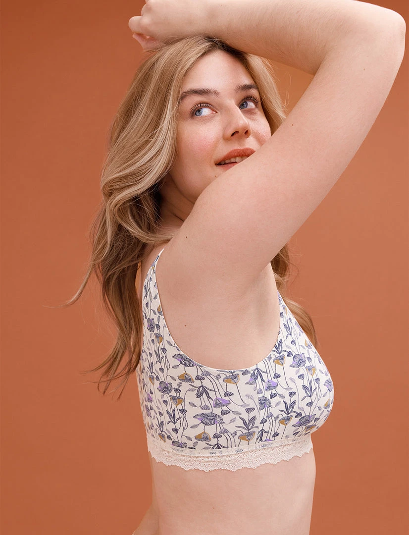 Made with WonderKnit™, our deliciously drapey, undeniably comfortable cotton jersey blend that gets softer with every wash and puts the “ahh” into bralettes. The comfiest sleep bra ever. No pinching elastic, just pure stretchy bliss trimmed in soft lace.