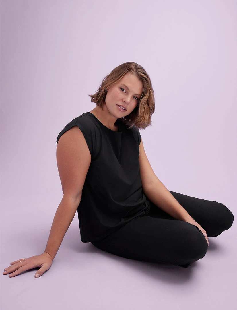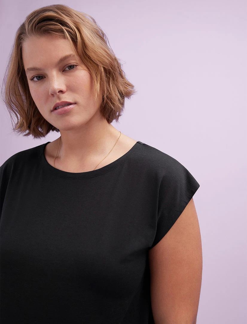 - Scoop neck with dolman sleeves