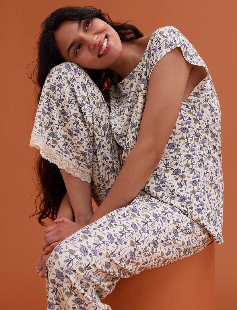 Made with WonderKnit™, our deliciously drapey, undeniably comfortable cotton jersey blend that gets softer with every wash. This stretchy PJ tee lets us skip straight to relaxation mode.