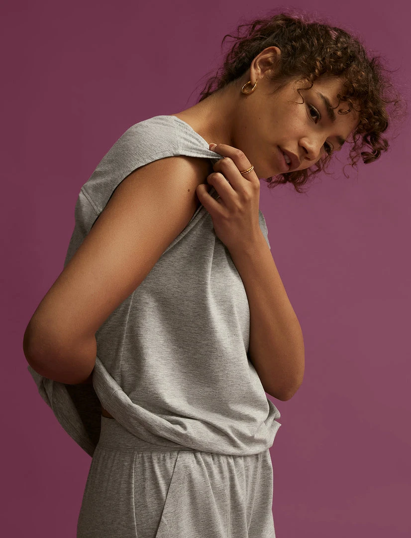 Made with WonderKnit™, our deliciously drapey, undeniably comfortable cotton jersey blend that gets softer with every wash. This stretchy PJ tee lets us skip straight to relaxation mode.